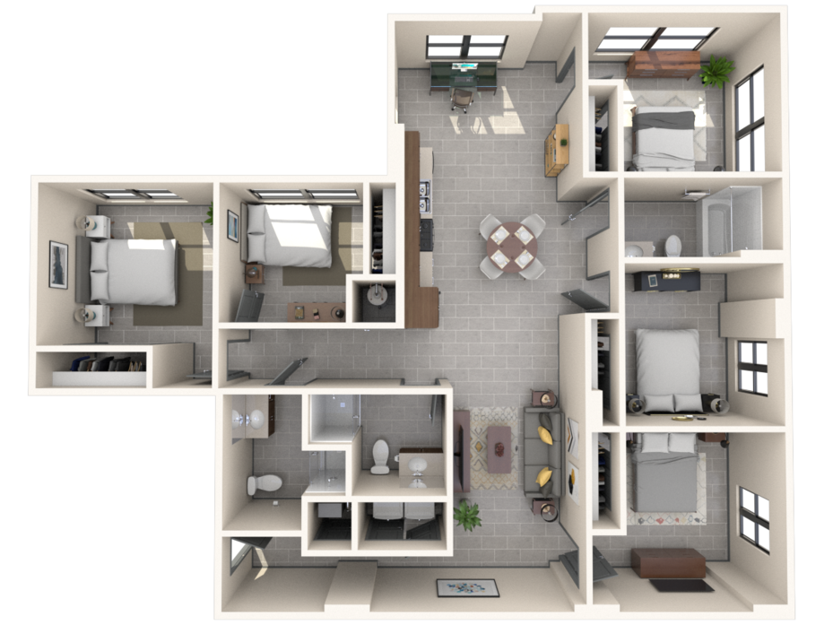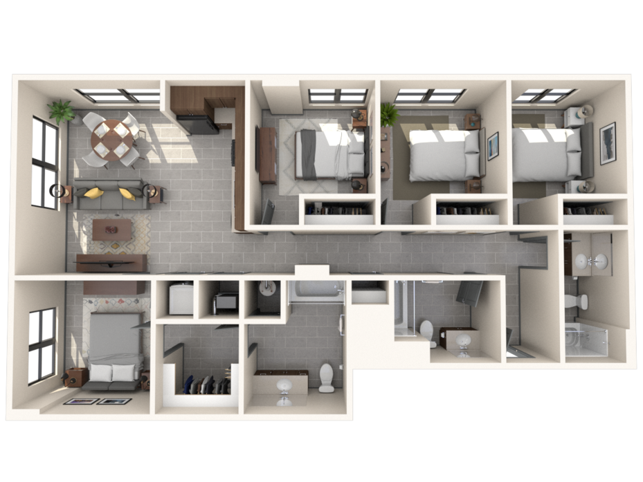 At Culmer Place, you can enjoy an affordable living experience without having to sacrifice comfort or quality. Equipped with all the modern conveniences you need, these studio, one, two, three, four and five bedroom layouts are designed to make your everyday life easier. Scroll through the images below for a closer look at each of our distinct floor plans. If you’re interested in seeing these spacious apartments for yourself, reach out and schedule a tour today.